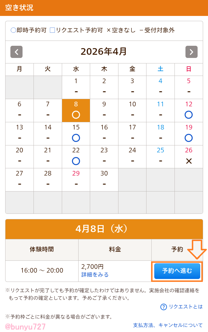 「予約へ進む」をタップして料金支払い画面に移動します。